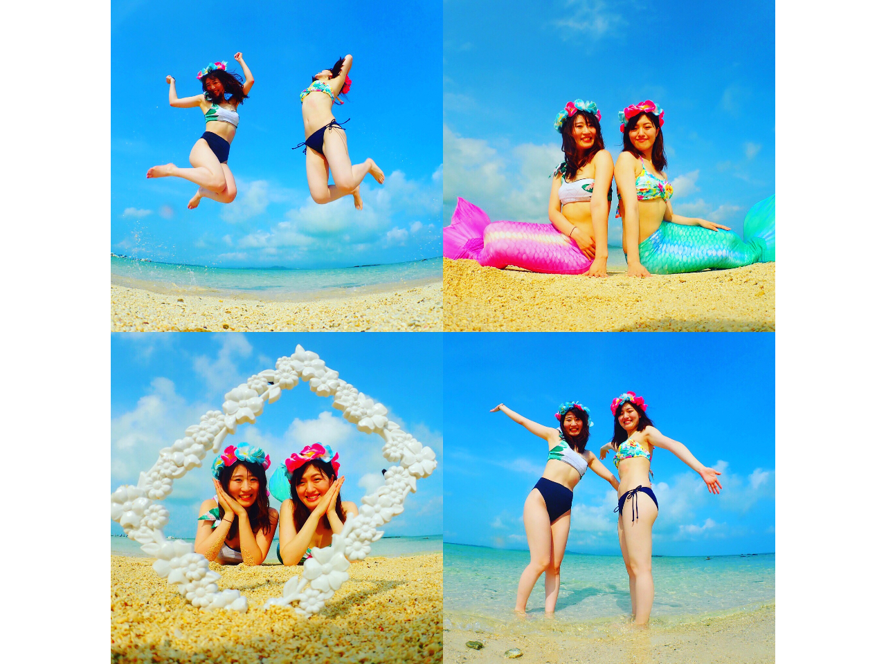 マーメイドフォト(人魚体験)幻の島上陸&シュノーケリングコース【女性やカップル、女子旅におすすめ!人魚姫気分で撮影!半日コースで8000円】