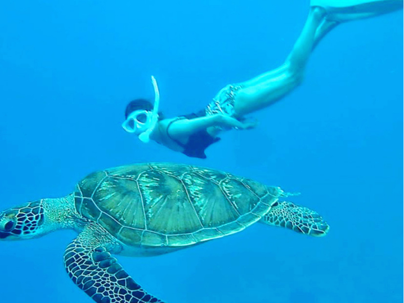 幻の島上陸とウミガメの棲むポイントで、ウミガメと一緒にシュノーケリング又はマンタチャレンジ体験プラン(半日)です。圧倒的な透明度を誇る石垣島の海でマンタチャレンジ又はウミガメと一緒に泳いでみませんか?