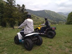 ゲレンデをバギーで走る爽快感。一面緑の中でバーベキュー、皆様も揖斐高原の自然をお楽しみください。