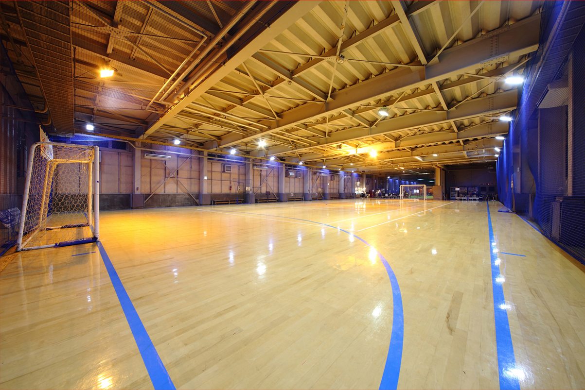 • フローリングコート(34m×16m)は「サッカースタジアム」がテーマ!コートサイドは広告看板を並べてスタジアムの雰囲気を再現!