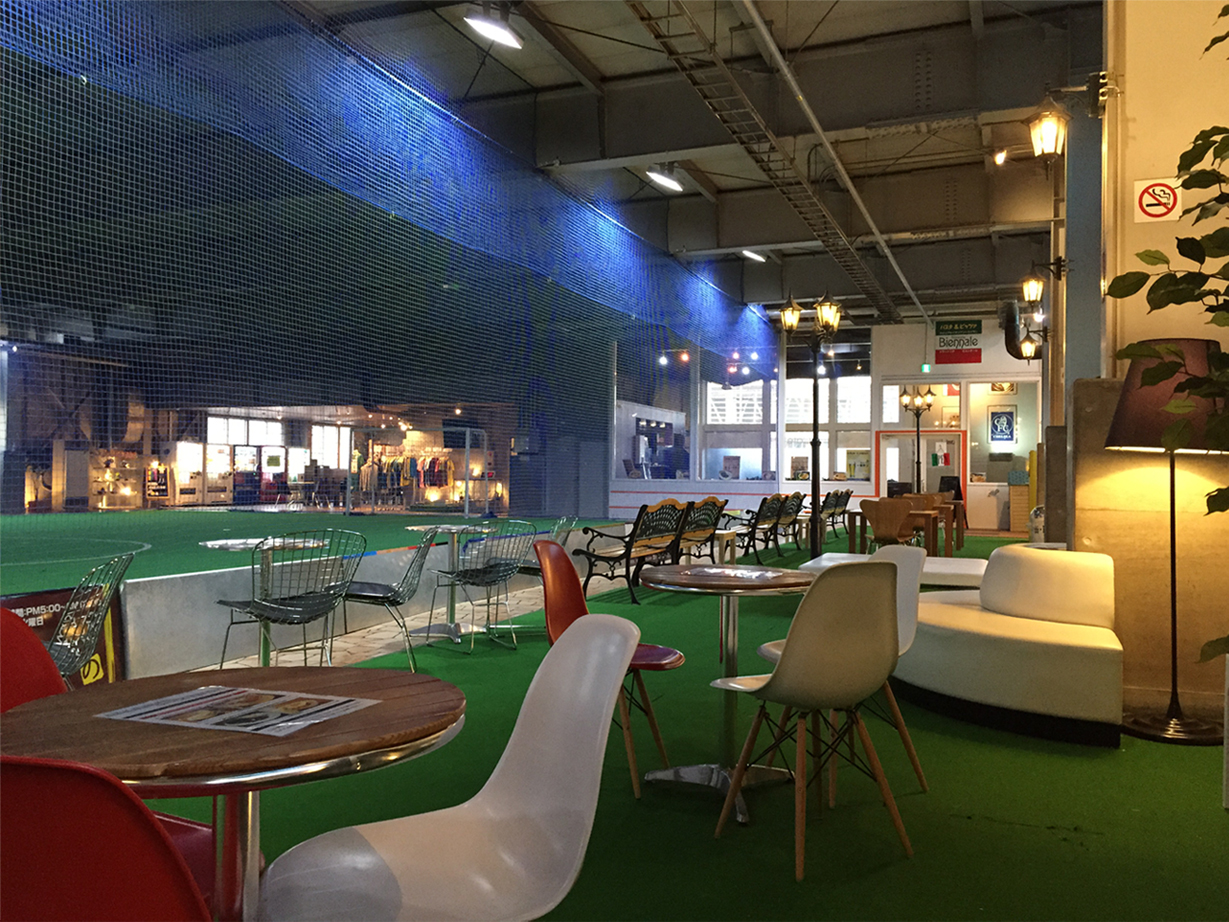 • 人工芝コートサイドの観戦スペースでは、デザイナーズチェアー、デザイナーズソファなど全部で約50席ございます。