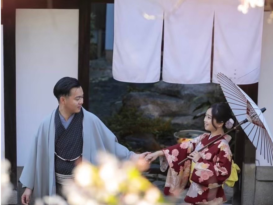 女性の方は、現地で正絹着物や訪問着に変更可能