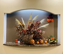 ハロウィン装飾のコラボ展示を行っております。