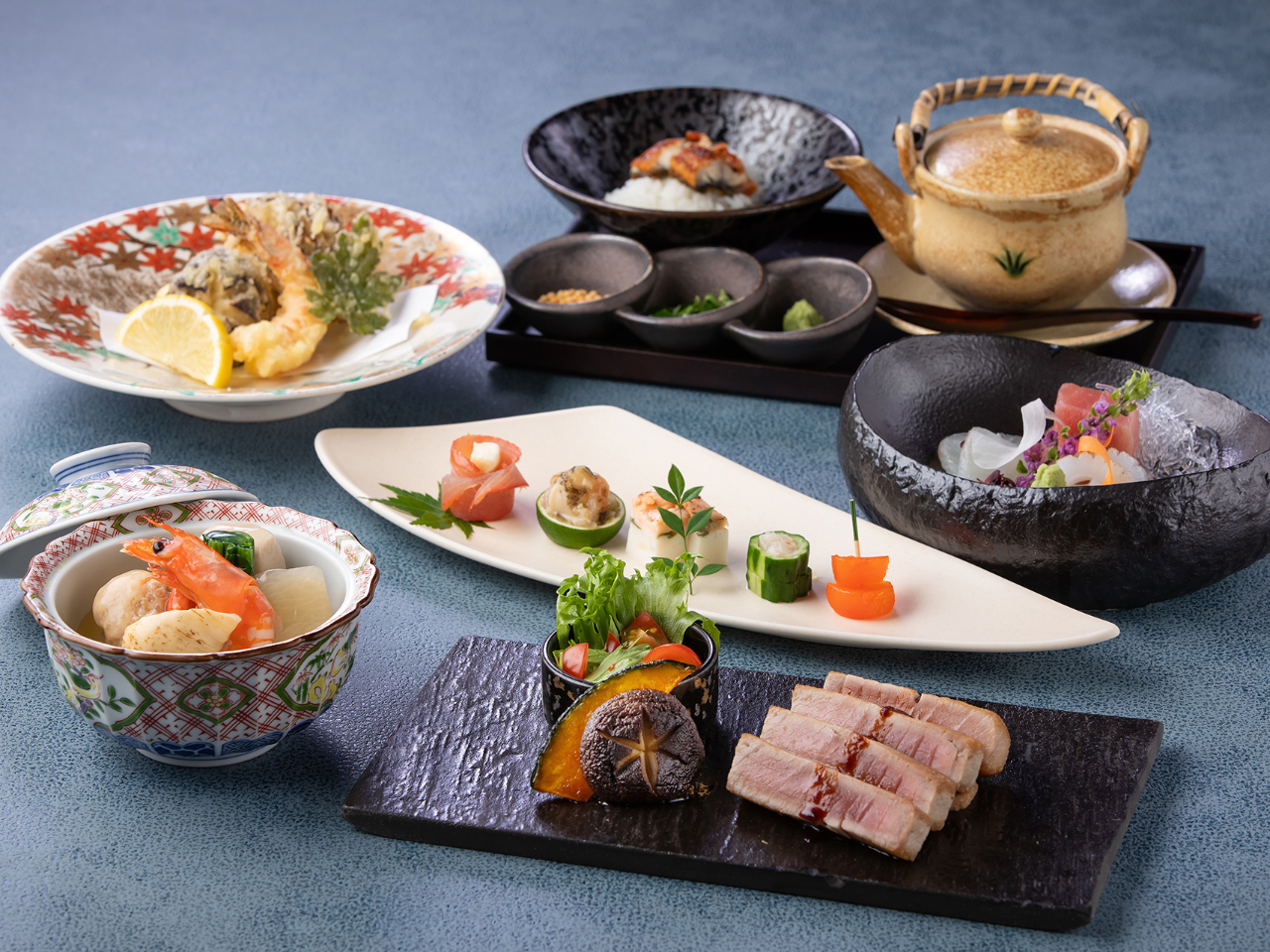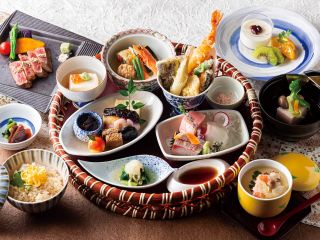 先付や前菜、あたたかい椀物、お造り、煮物、主肴、食事、水菓子と、旬の食材をふんだんに使った美しい和食のフルコースを、優雅な空間で堪能できます。