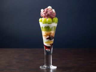 シャインマスカット、ブドウジュレ、バニラムースなどを使用したナイトパフェ