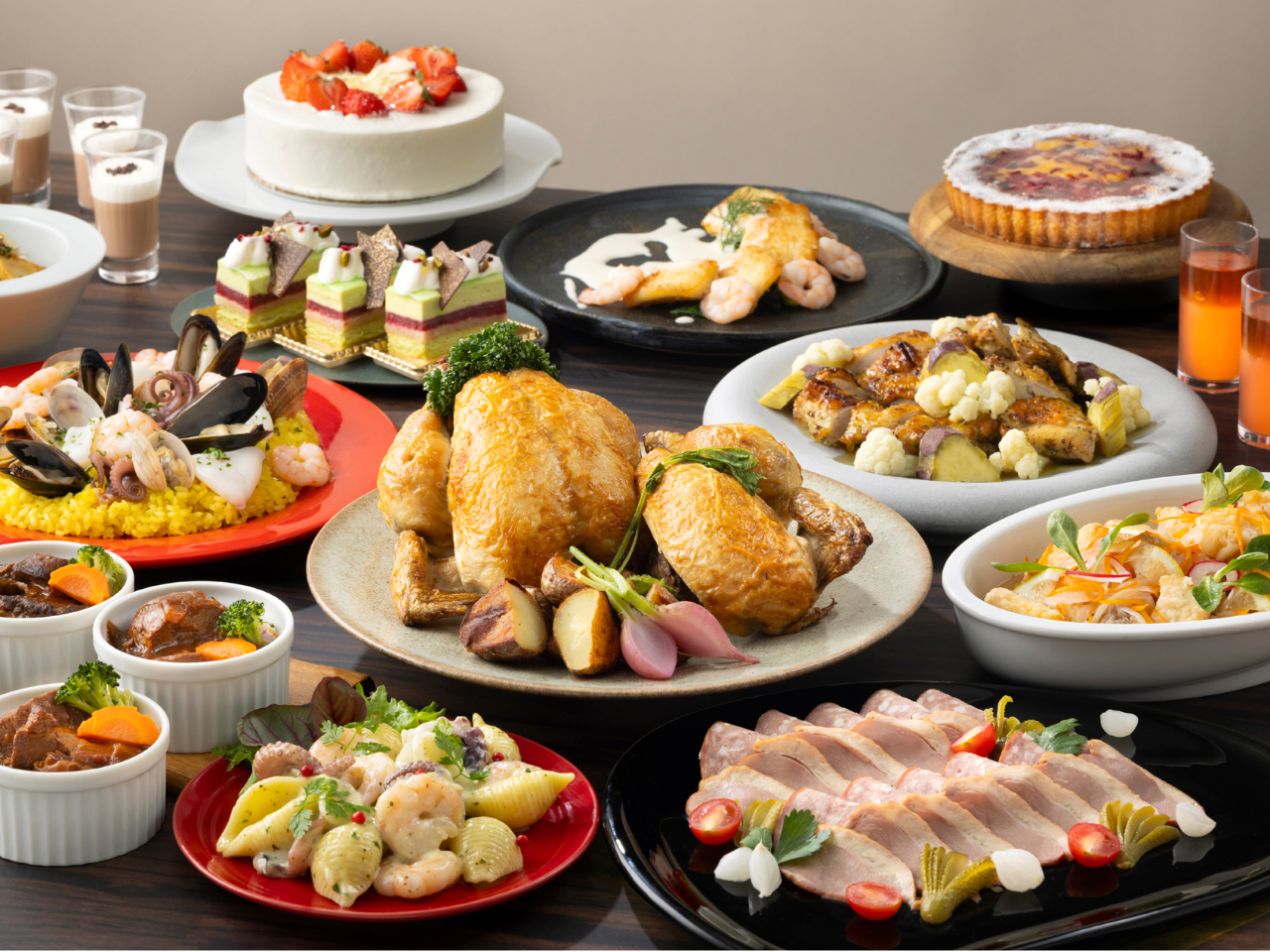 贅沢な本ズワイガニやロティサリーチキンに加え、ローストビーフやステーキなど人気の料理も揃っているのが嬉しい。大切な人とおいしい料理を囲みながら、思い出に残るクリスマスを。
