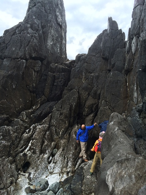 リアス式らしいデコボコした岩場を歩いてそばまで行く冒険プログラム!
