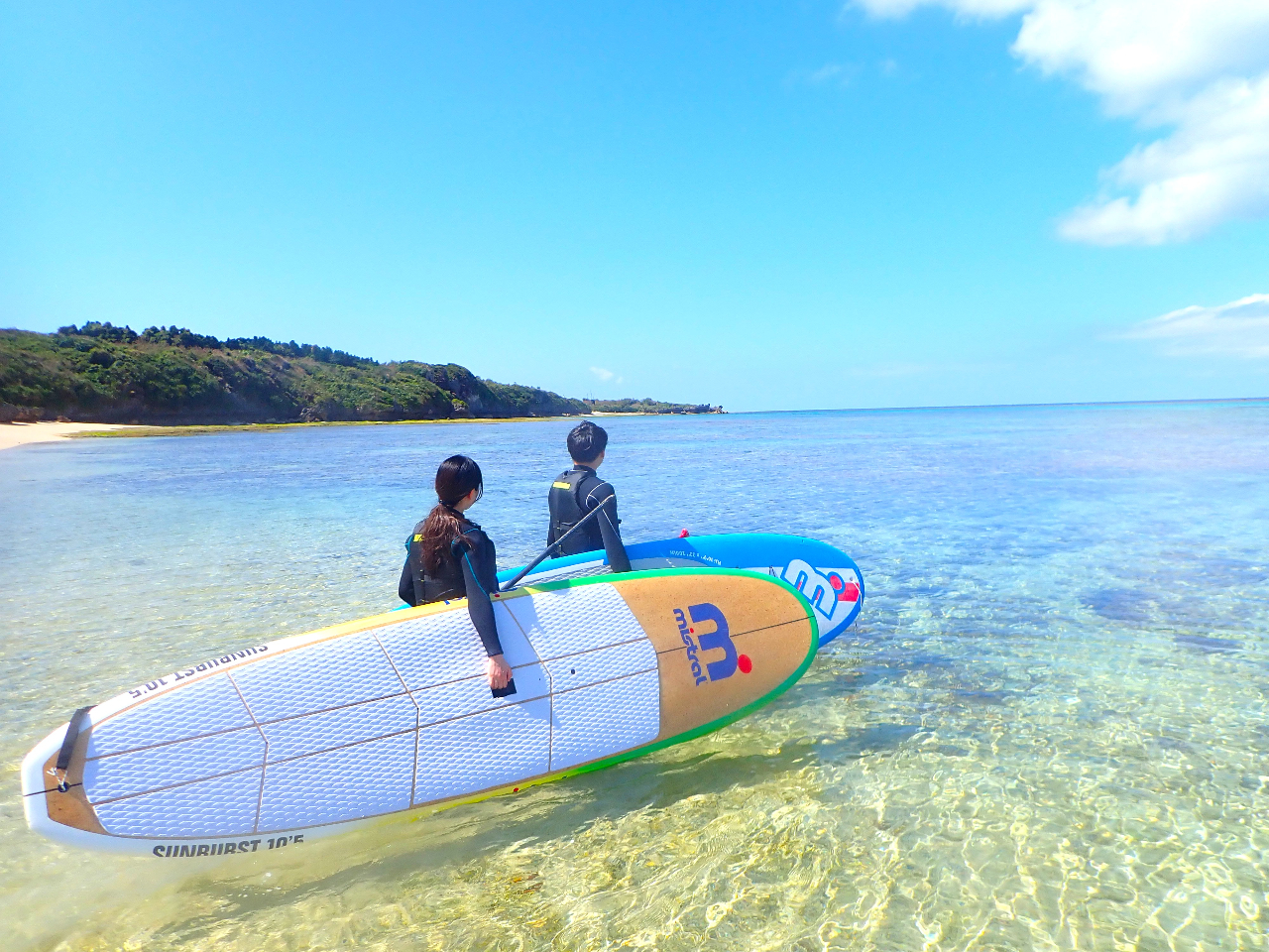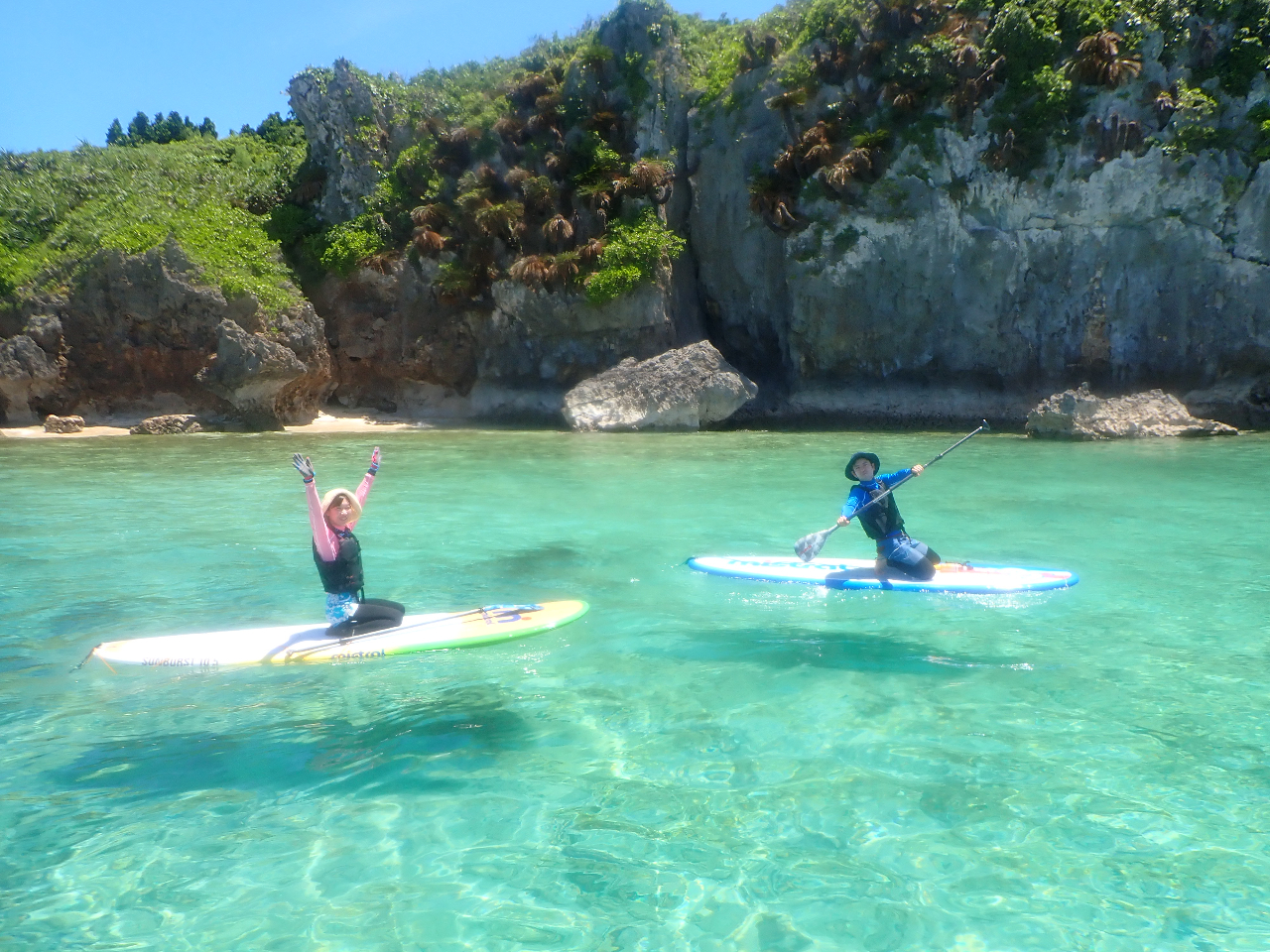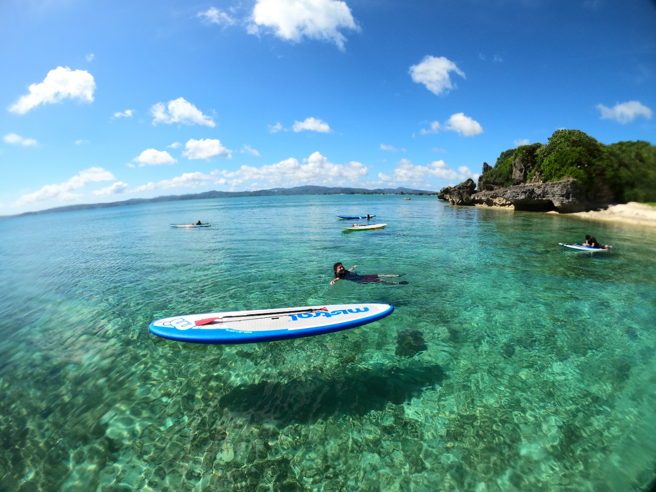 SUP(スタンドアップパドルボード)に乗って沖縄の海の上をクルージング♪