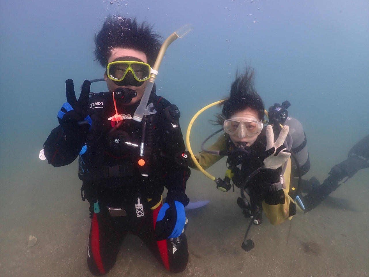 この時期は海の中は寒いんじゃない?と思われるかもしれませんがご心配ご無用。ドライスーツという冬用のスーツを使うので海の中も快適に過ごせますよ♪