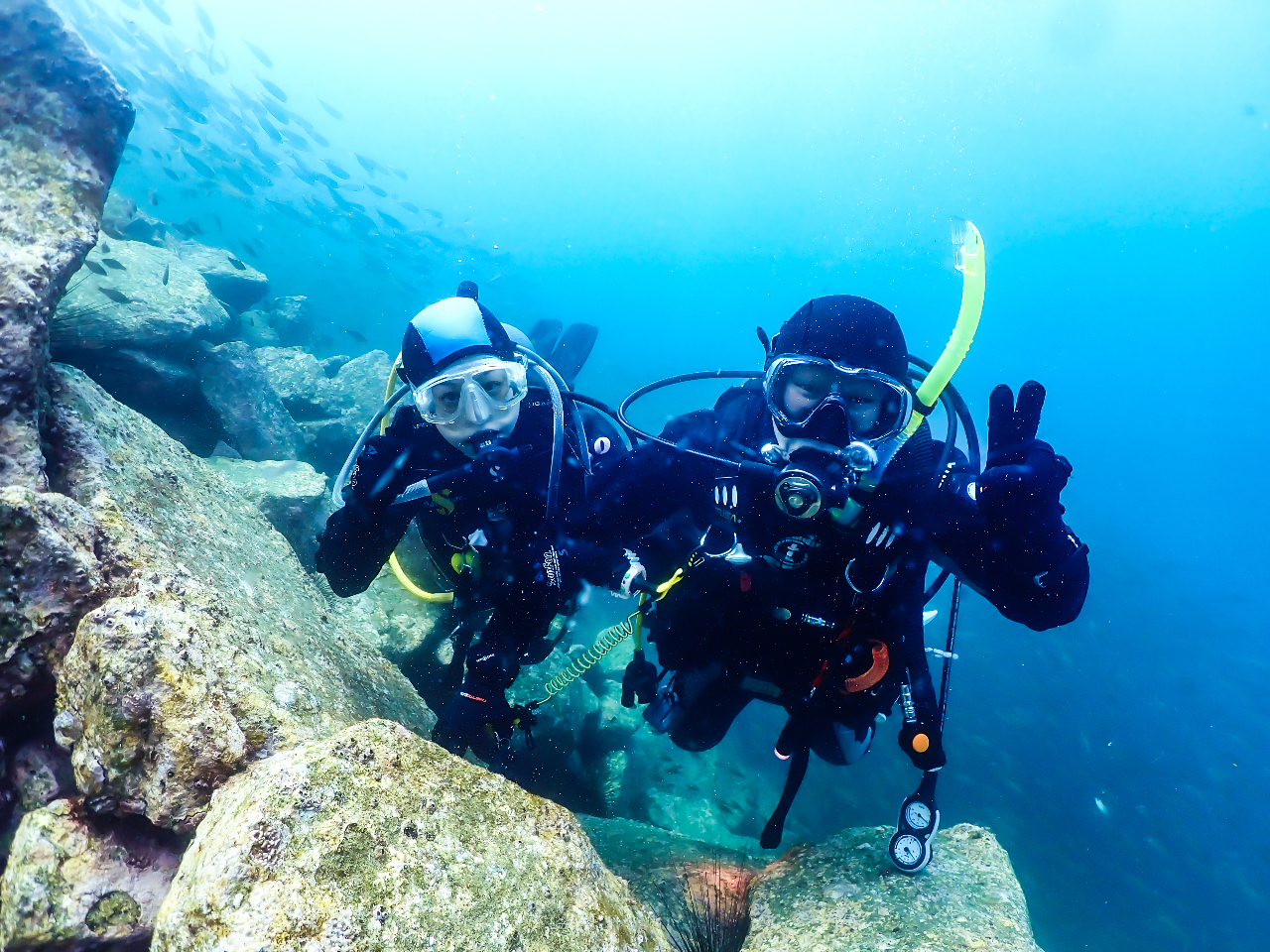 ドライスーツという冬用のスーツを使うので海の中も快適に過ごせますよ♪スキューバダイビング