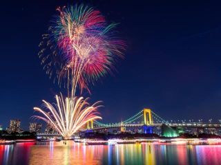 「お台場レインボー花火」は、短時間ながら迫力満点!
