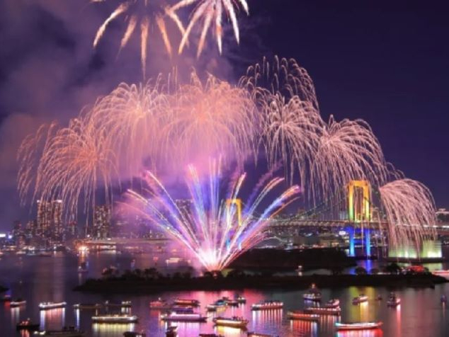 「お台場レインボー花火」は、短時間ながら迫力満点!