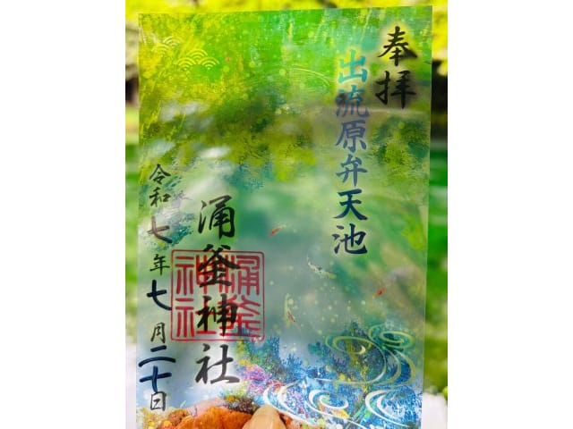 手書きで描かれた天狗様の御朱印は、芸術性が高く大人気。どの天狗様に出会えるかは一期一会です。また、出流原弁天池にちなんだ透明な御朱印は、池にかざして撮る写真も人気です。