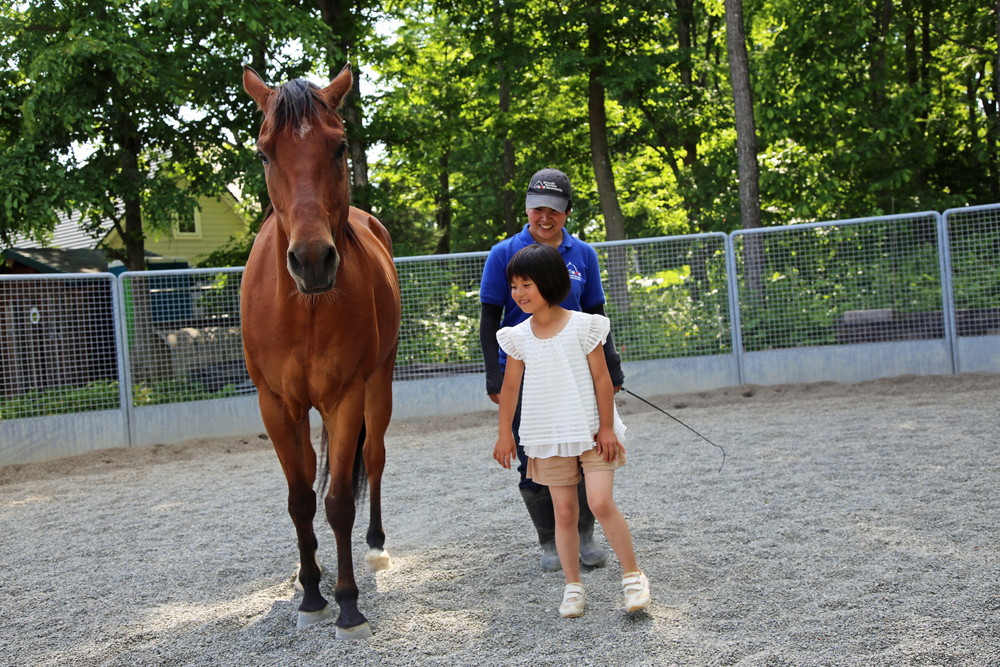 帯広市街地からほど近くにある、北海道らしい田園風景が風光明媚なエリア。そこにヒロユキ・モチダ ホースマンシップのスタディセンターがあります。オーナーの持田裕之氏は日本で最初にナチュラル・ホースマンシップを取り入れ始めた人物で、現在はそのナチュラル・ホースマンシップの理論に基づいた、馬本来の性質や行動特性、心理などに着目した馬との関わり方をベースに、新馬調教、馬のしつけやマナー、リーディング(引き馬)などについて全国各地で講習会を行っています。本アクティビティは、乗馬や、馬を下りて馬とのコミュニケーションを行なうグラウンドや、ホースショーを楽しく体験しながら、そのナチュラル・ホースマンシップの世界に触れることができます。持田氏の教えを学んでいるセンターの専属スタッフが対応してくれます。プログラムの合間には、素敵な景色を眺めながら、地元の美味しいお菓子でティータイムも楽しめます。十勝の大自然の中で、馬の素晴らしさを体感することで、素敵な癒しの時間を過ごしてみませんか?