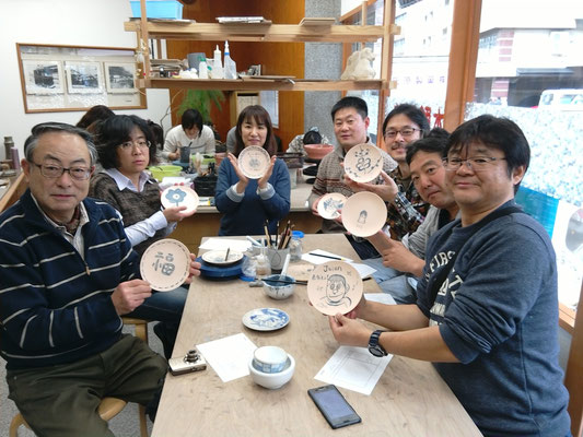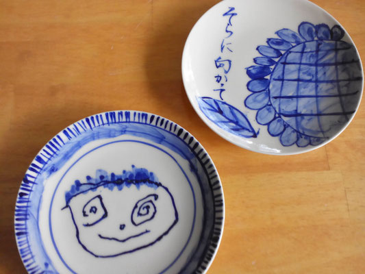 ・本格的な有田焼のお皿を使用します。焼成後の作品はお家で使えるちょっとおしゃれな作品になるかも♪