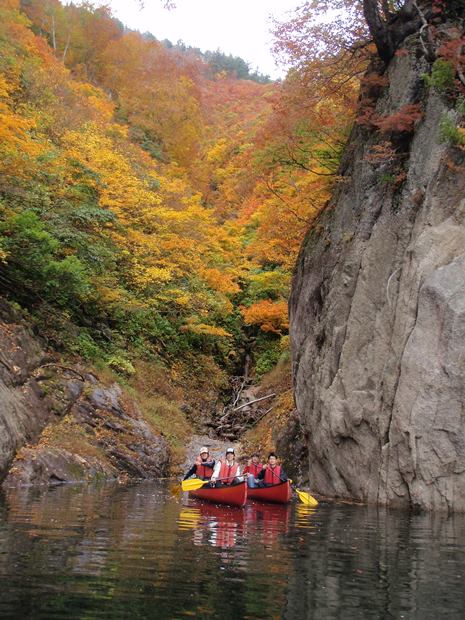 カヤックよりも安定感のあるカナディアンカヌーなら、陸からでは近づくことのできないポイントや渓流の中で安全に楽めるので、