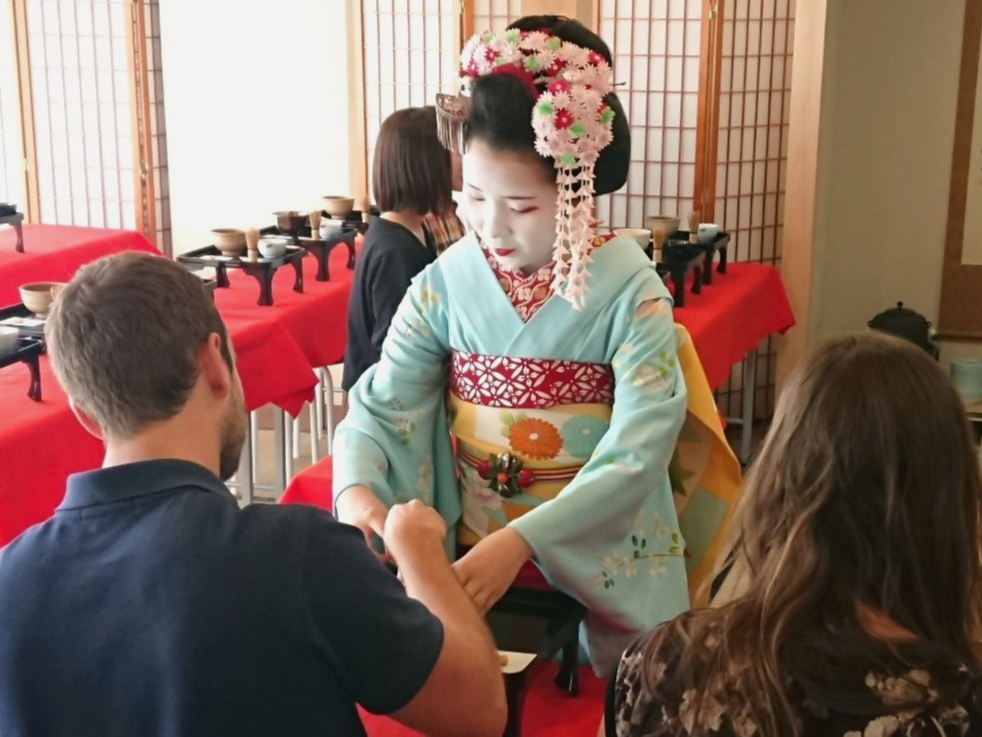 普段は中々会うことの出来ない、本物の舞妓さんに出会えるチャンスです!舞妓踊り鑑賞からツーショット写真撮影、舞妓さんと一緒にお点前、お座敷遊びも楽しめます。更に軽食、フリードリンクつきで期間限定値下!