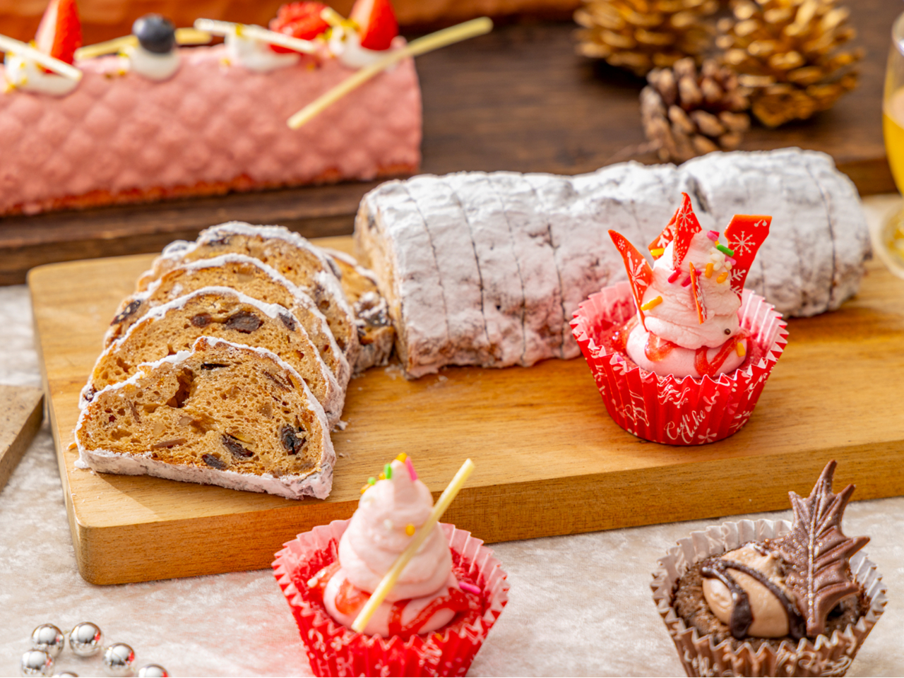 香ばしいローストチキンや黒豚トマホークなど豪華なメイン料理に加え、シェフのライブカッティングで楽しむローストビーフや、冬に嬉しいチーズパングラタンも登場。さらにブッシュドノエルやシュトーレン、華やかなクリスマススイーツが並ぶデザートエリアも必見。