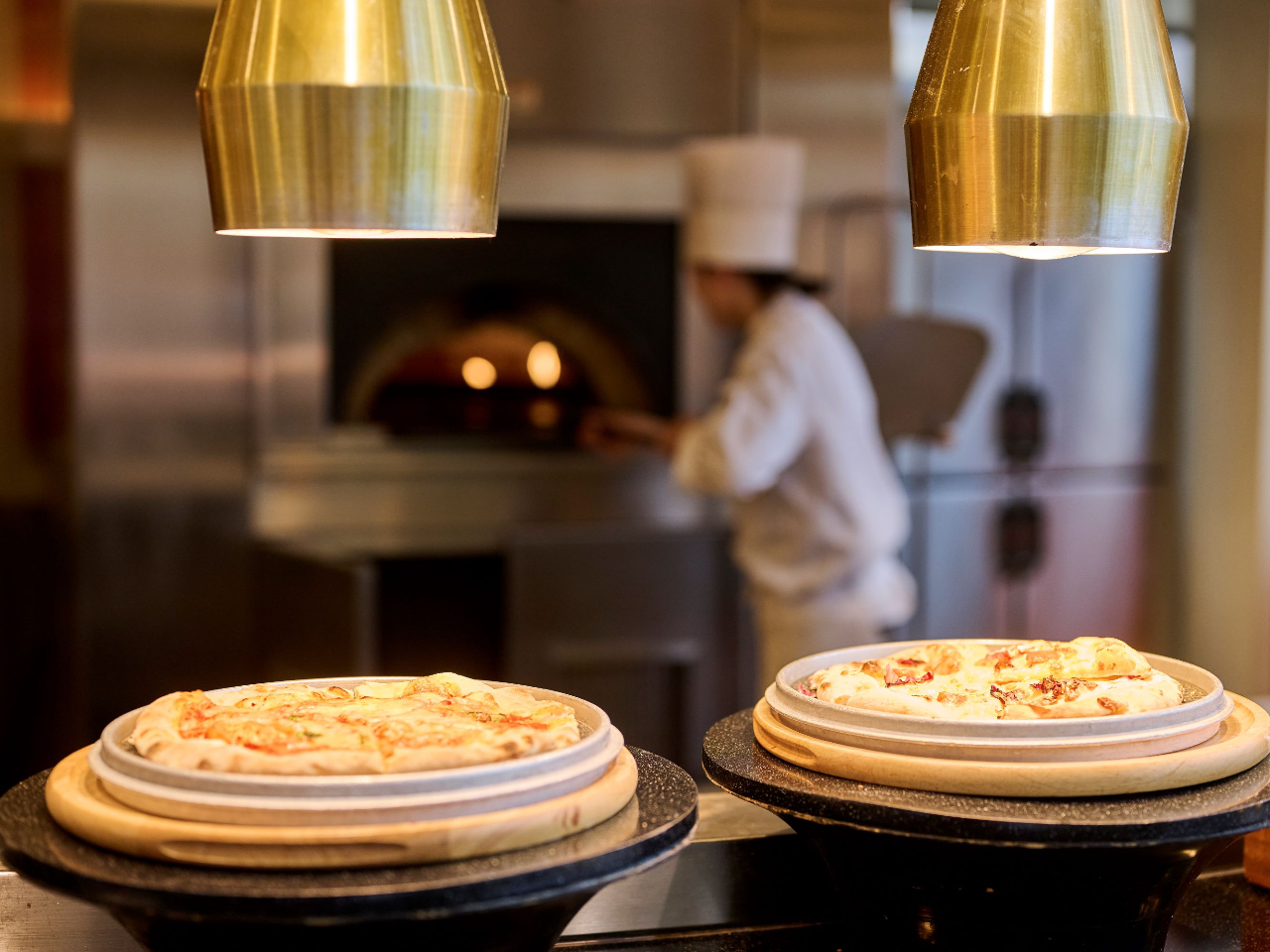 シェフが目の前でカットするジューシーなローストビーフをはじめ、石窯ピザ、点心、カレーなど、和洋中が勢揃い。さらに、シーズンごとに変わるフェアメニューで、何度訪れても新しいおいしさをご提供いたします。