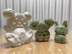 お子様の生徒さんもいらっしゃるようで、お人形のようなオブジェのような作品が置いてありました。世の中の陶芸教室の多くはお皿やお茶碗を作っていると思うので、とても柔軟なお考えの先生なのかなという感じがします。