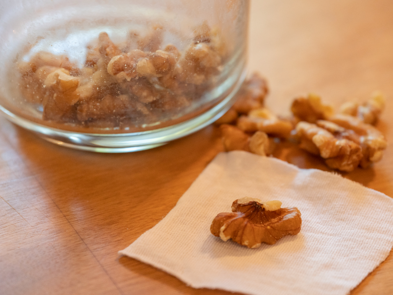 仕上げには口に入れても安心な生クルミを使って塗装。