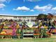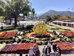 中央公園の噴水の周りは菊の様々なトピアリーが囲んでいてとても綺麗です。若い人もここで記念撮影しています。公園にはモノレールやメリーゴーランドなど従来からある大型遊具の他に新しい遊具も増えて家族連れでいっぱいでした。お土産を買うところやフードコートもありました。