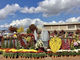 菊人形は時代劇では無く童話の世界です 正面玄関前から菊がずらりと並んでいます。中に入るとマスコットキャラクターのきくりんを中心に菊が周りを取り巻いていて記念撮影スポットでした。2022年の「菊人形」は桃太郎、赤ずきん、大きなかぶと菊人形期間中「レビュー」をやっているOSK日本歌劇団がテーマでした。