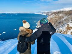 2月23日お世話になりました。スタッフさんのガイドで最高の体験をさせて頂きました。58才の主人と52才の私で、足手まといにならぬ様に心構えをしておりましたが、登山を趣味の一つとしておりますので無理なく歩く事が出来ました。前日の2月22日に網走で流氷ツアーを予約しておりましたが、連日の暖かすぎる気候のため、3日前までは接岸していた流氷も肉眼では全く見えなくなってしまったため、船での流氷ツアーはキャンセルとなったため、心底落ち込んでおりましたが、翌23日知床まできてみたら、流氷がびっしりで本当に感動しました。スノートレッキング中もお天気に恵まれ、断崖絶壁の絶景、流氷、エゾジカ、オオワシ…盛りだくさんで楽しませて頂きました!
