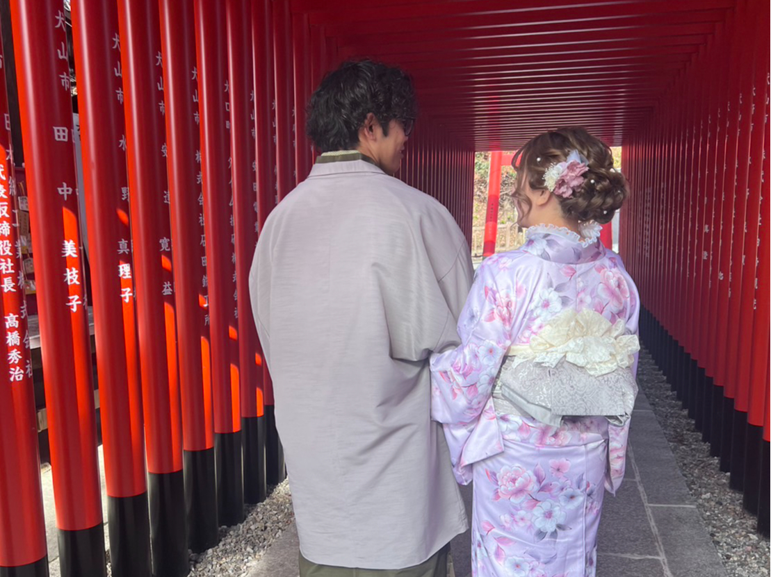 【犬山の城下町をぶらり旅☆】カップル着物・浴衣着付けレンタルプラン※女性のみ ヘアセット付