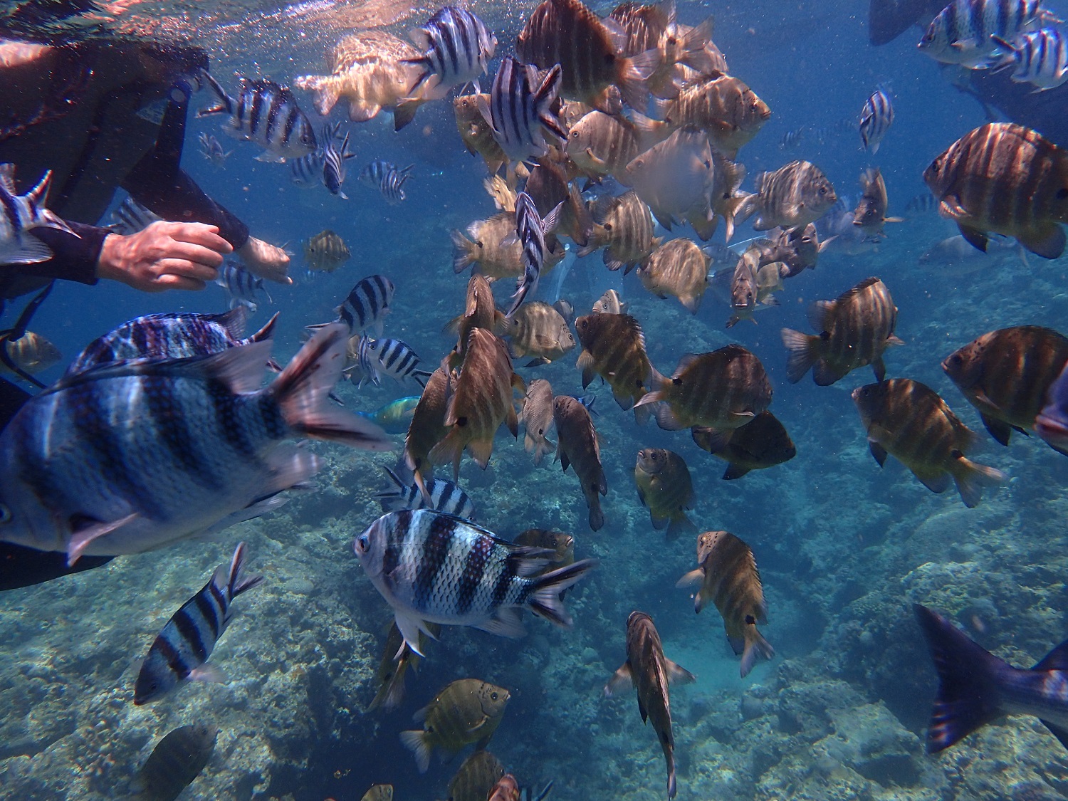 国頭郡恩納村にカラフルな熱帯魚が集まる楽園があります!