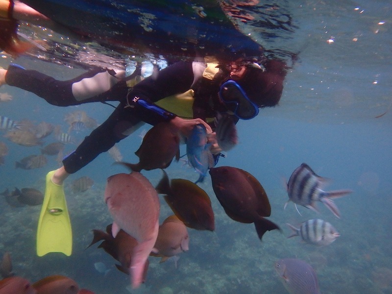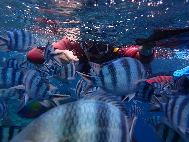 沖縄国頭郡恩納村で、カラフルな熱帯魚達が集まる楽園で一緒に泳ごう!