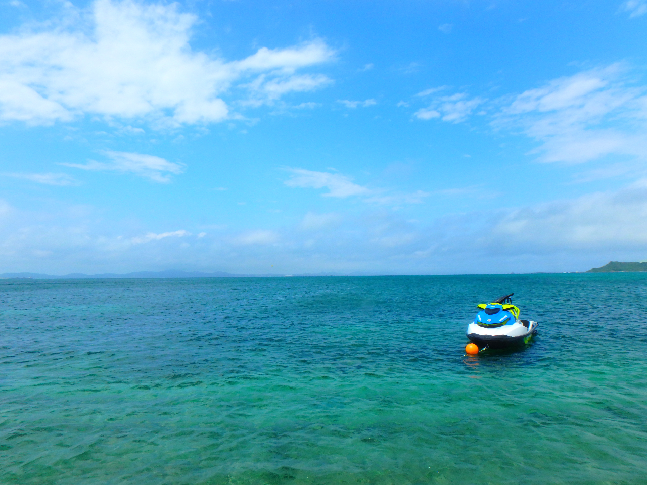 沖縄の青い空、青い海の上をジェットスキーで駆け抜けよう!