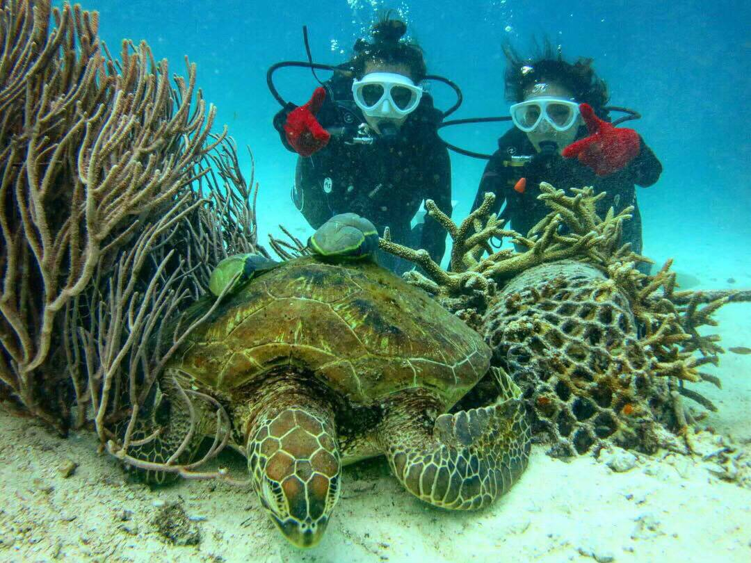 ダイビング初心者でも安心!プロのダイバー大人気のウミガメと一緒に泳いでみませんか?