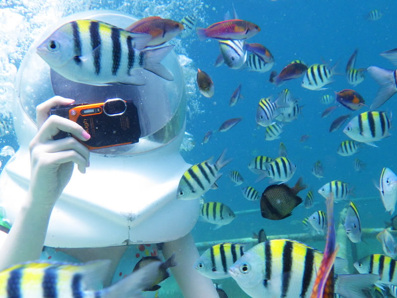 歩いて熱帯魚とふれあい、青の洞窟をシュノーケルで神秘体験!シーウォーカー