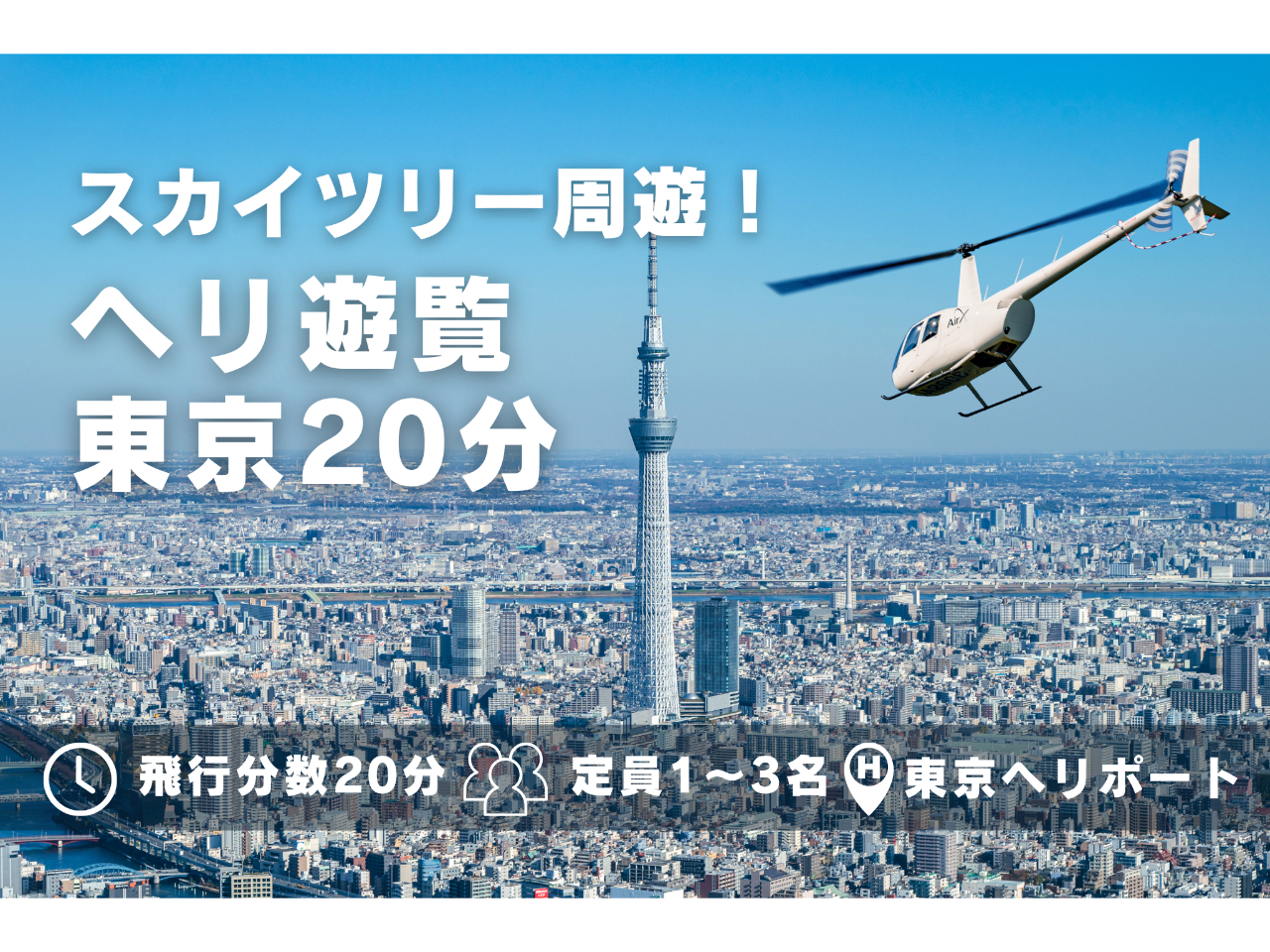 【東京20分】豪華ヘリコプター遊覧!スカイツリーぐるっと一周♪(カップル/ファミリーにおすすめ貸切ヘリコプター◎)のプラン詳細
