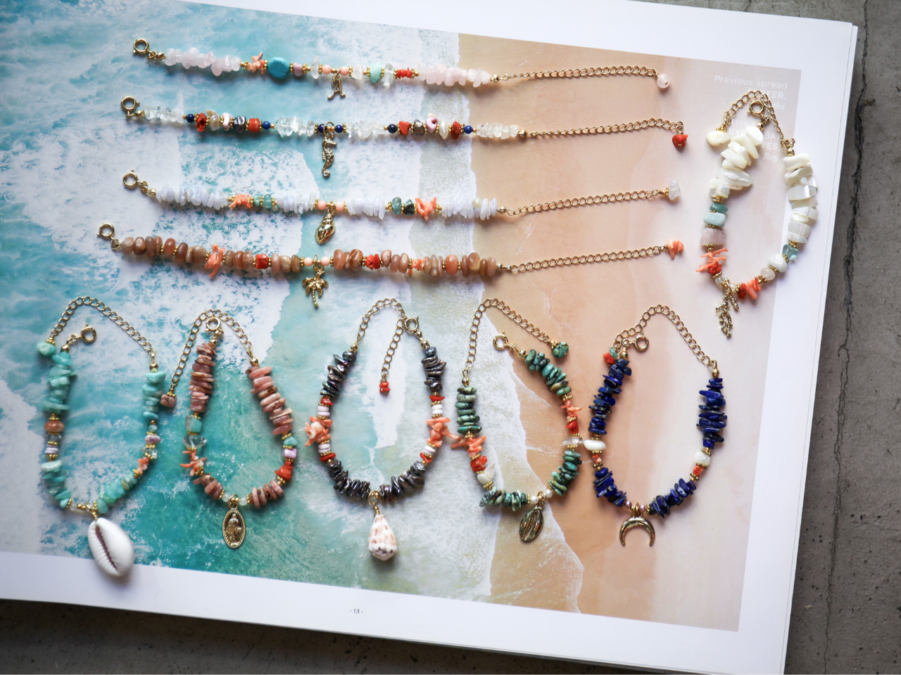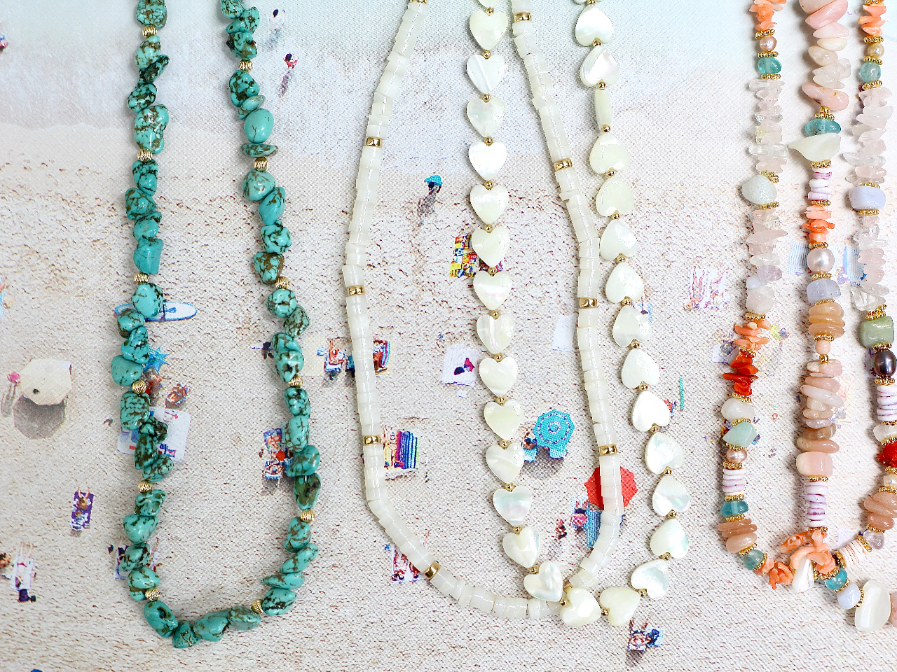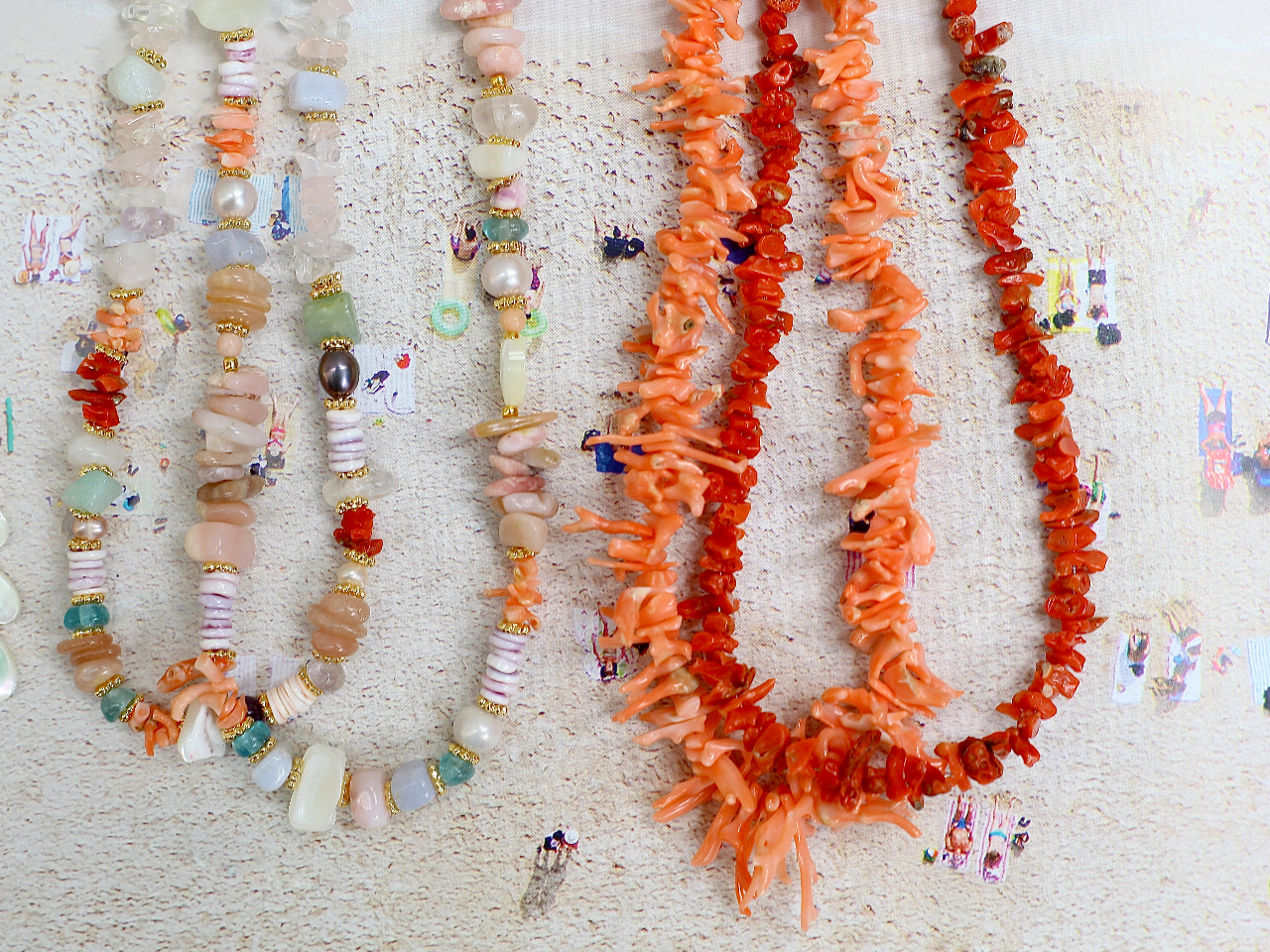 沖縄天然シェル、天然サンゴ、天然石を使用した世界にひとつだけのネックレス作り体験