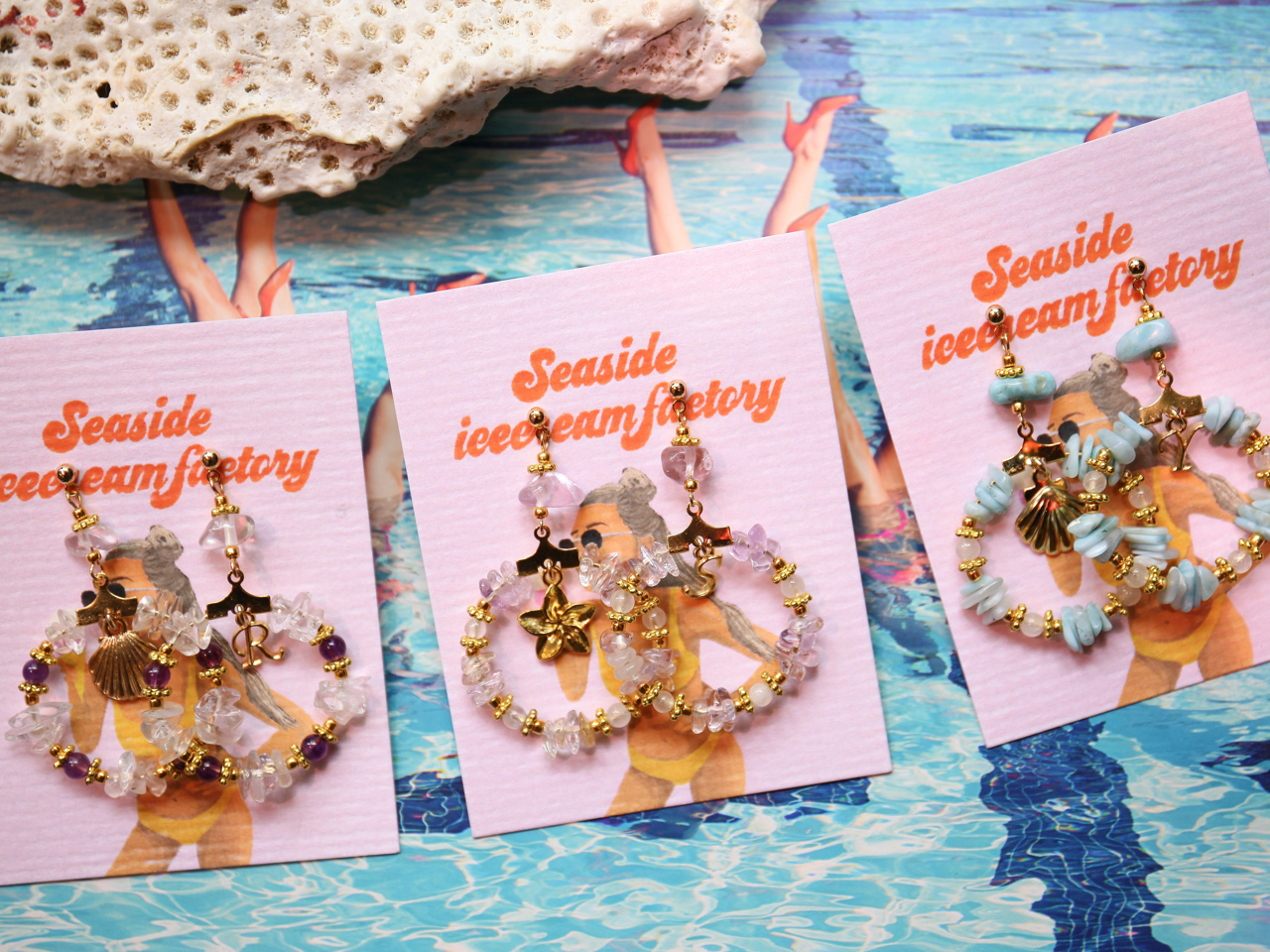 沖縄天然サンゴなどを使用した世界にひとつだけのフープピアス作り体験