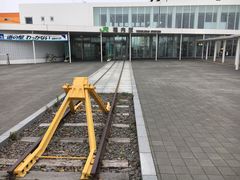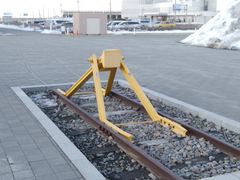 JR稚内駅より玄関を突き抜けてレールが延び、外に列車止めのモニュメントがありました。このレールは、さらに駐車場までレール跡が伸びていました。昔、どこまで伸びていたのだろうか。