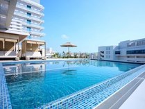 宿泊者の方専用でご利用いただけるプールエリアは、日中は南国らしい開放感を楽しめ、夕方からはライトアップされた幻想的な雰囲気を感じていただけます。