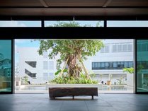 フロア中央にはシンボルツリーのガジュマルが印象的なテラスを配置。ロビーやダイニングともつながり、この土地ならではの開放的で穏やかな時間の流れを感じていただける空間です。