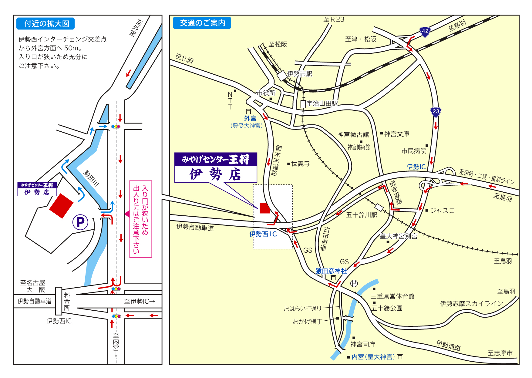 - 伊勢志摩みやげセンター王将 伊勢店の交通アクセスは?