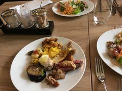 多国籍料理でしたが、何よりサラダの種類が多い。何品目食べらるのってくらい野菜や豆の食材が多く、女子受け良いです。ラズベリーソースは目にも鮮やかで美味しかったです。