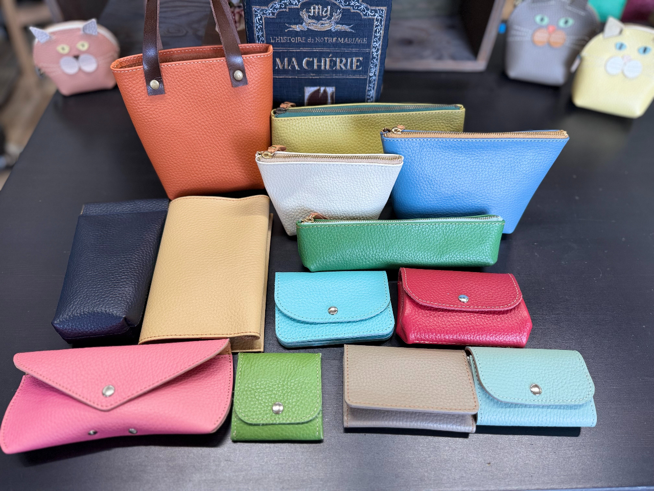コインケース、カードコインケース2種、キーケース、名刺入れ、ポーチ、ペンケース、メガネケース、ミニトート、ブックカバーから選び頂けます。