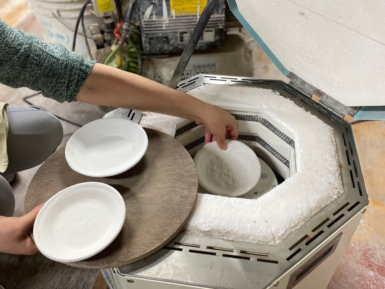 制作していただいたお皿は、素焼き後、釉薬を掛けて焼き上げ、1ヶ月半後にお渡しいたします。