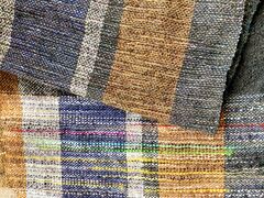 両手両足を使って縦糸が張られた織り機に横糸をひたすらに紡いでいきます。カラフルな糸は訪れる度に様々にあり選択する嬉しい悩みも多々あります。「どう使うのか?」「誰に贈ろうか?」作品が出来上がってからの楽しみもありますよ。