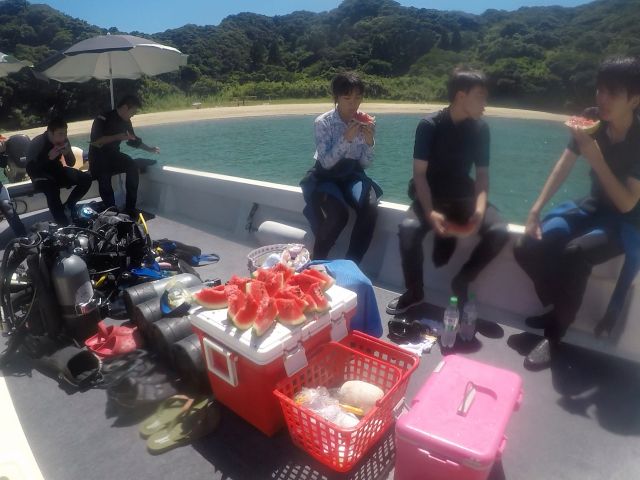 その後、島の港にて昼食、休憩後2本目のダイビングへ出かけます。