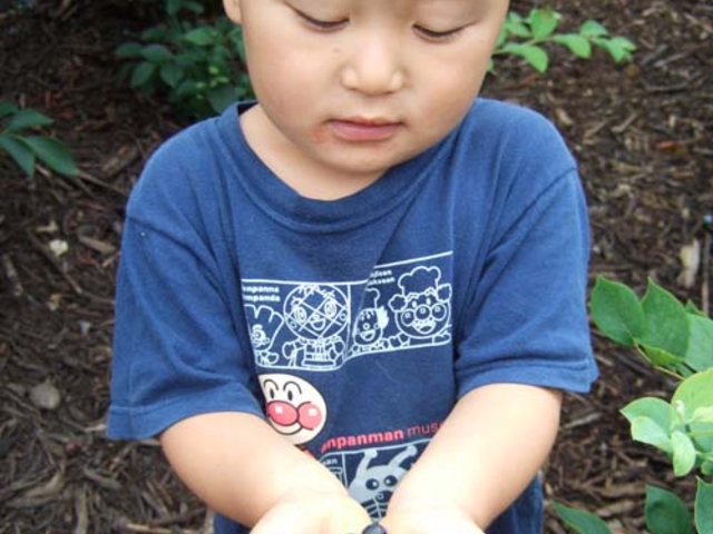 ブルーベリーの森の中を大粒を探して子どもと歩き回りました。