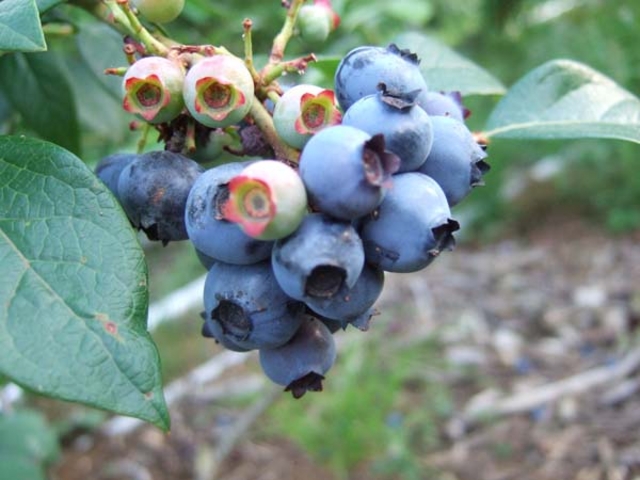 ブルーベリーの実。低い木なのでお子さんも摘めます。