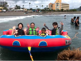 お子様でも乗れるくらいで海の上を楽しんでいただけます♪バナナボート・チュービング