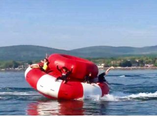遠心力でスピードをあげ、波しぶきを浴びながら楽しめるトーイングチューブ!